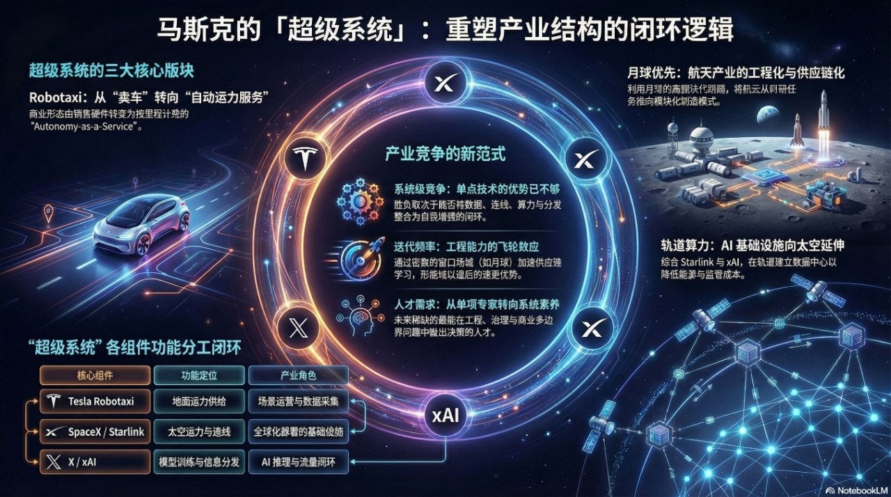 从 Robotaxi 到月球城市:马斯克的「超级系统」与产业结构重写