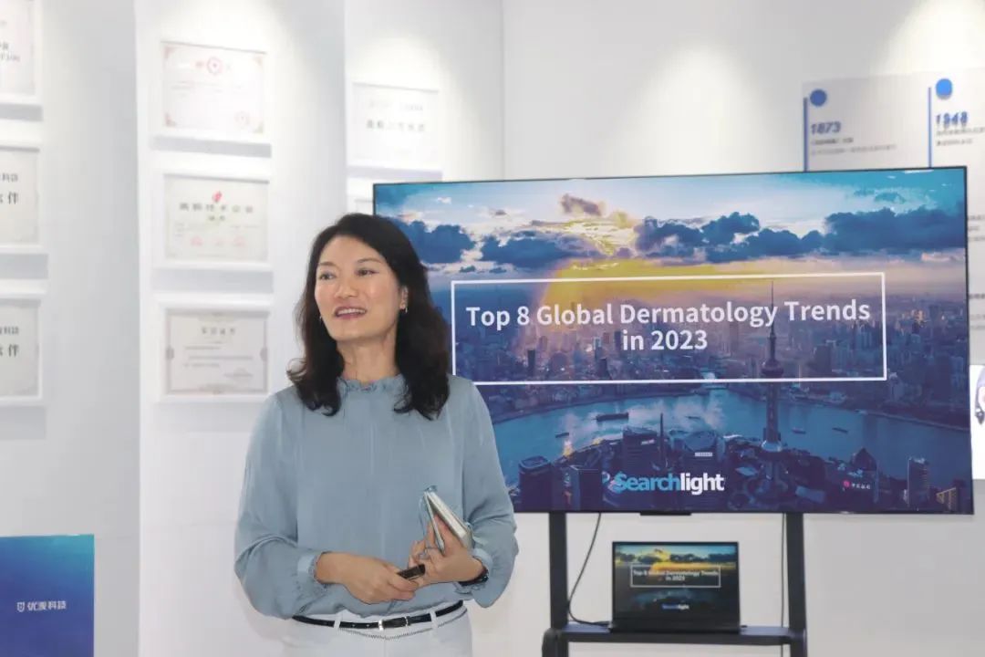 从行业大趋势来看,吴老师引用了一份最新报告,统计了全球3300多家皮肤领域相关的新创企业,提炼了“2023年全球皮肤领域的八大创新趋势”,关键技术主要围绕人工智能AI, 移动数据,及互联网医疗;其中涉及的领域包括早期诊断、皮肤科用药、个性化皮肤护理、美容治疗、过敏护理、制药皮肤病、数字皮肤科、可持续发展的化妆品、临床决策支持等,这八大趋势精准体现了医学逐渐与消费者生活,尤其护肤品的深度融合。