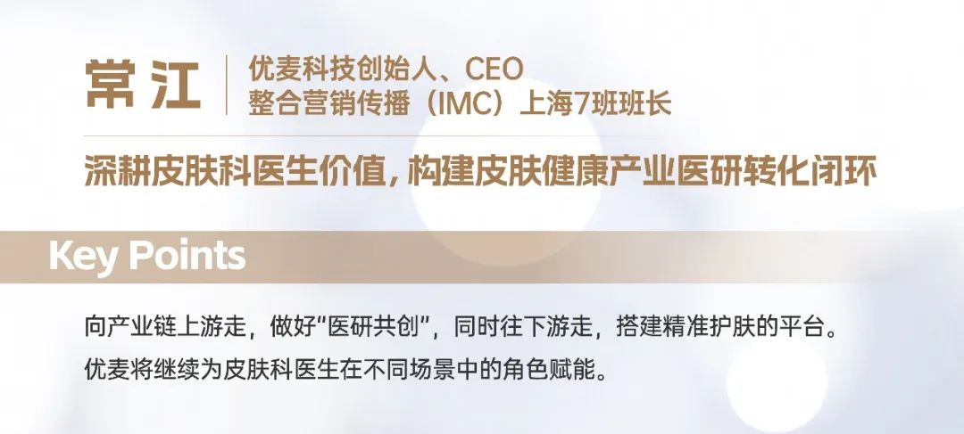 当下的护肤品市场,无论是下游消费者,还是中上游端的企业厂家,都亟需皮肤科医生的权威意见。品牌希望从皮肤科医生的临床观察中了解市场需求,包括后续的科学循证、产品背书、科学传播,最后达到影响消费者心智的目的;消费者需要皮肤科医生做权威解答;皮肤科医生也期待有相应的科研成果落地转化。优麦正在充分利用自身平台上皮肤科医生的资源优势,整合并盘活企业端、消费者端和医生端的供需,发挥产业链中的枢纽作用。