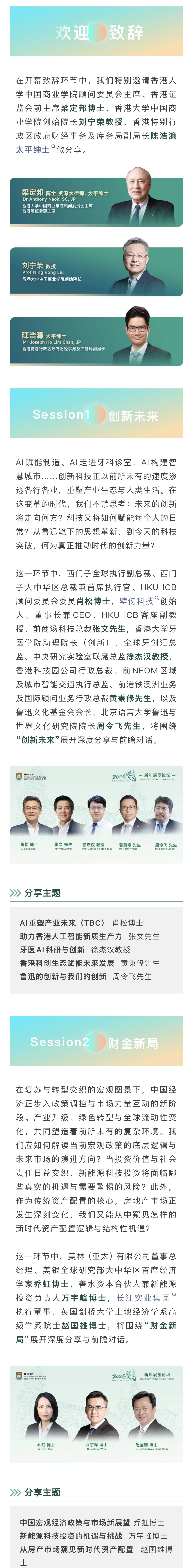 在港大乃至香港积极拥抱科技创新、全力建设国际创科中心的战略指引下,论坛以“从港大出发,领创未来”为主题,紧扣时代脉搏,展望未来,探索机遇。届时,18位来自学界与业界的重量级嘉宾将齐聚港大,共话未来。