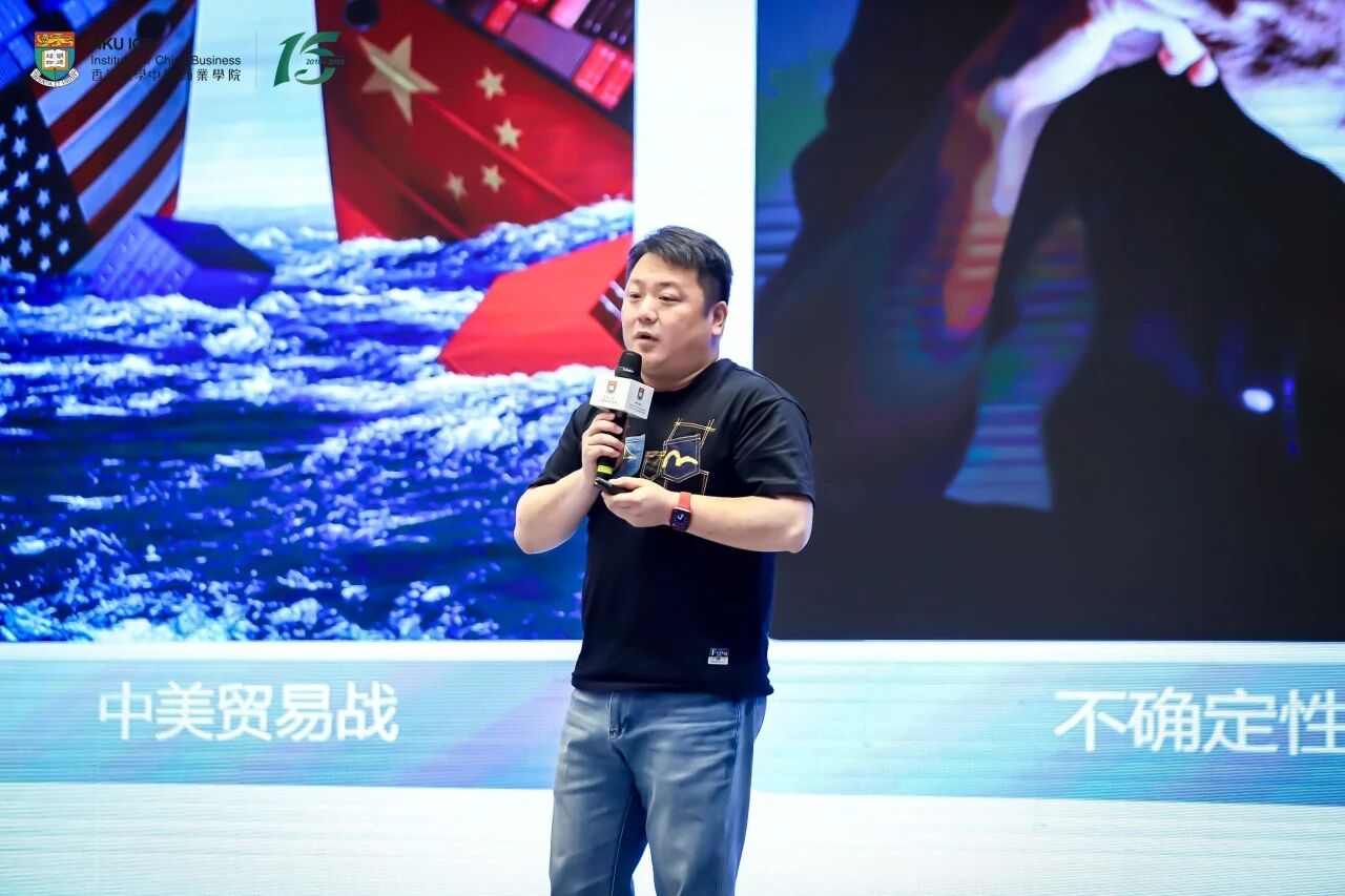 HKU ICB客座讲师、曾任职摩根大通银行JPMorgan及花旗银行董事、罗斯柴尔德家族银行亚洲区董事、美国哥伦比亚大学国际金融硕士邹宇先生以《全球变局下的经济脉动:解码企业发展的关键因素》为题展开演讲。他指出,全球经济已进入"制度博弈、资本重组、技术重构"三重叠加的新阶段。在这一背景下,企业需要构建"系统韧性、金融认知、资产流动性"三大关键因子,以穿越周期。
