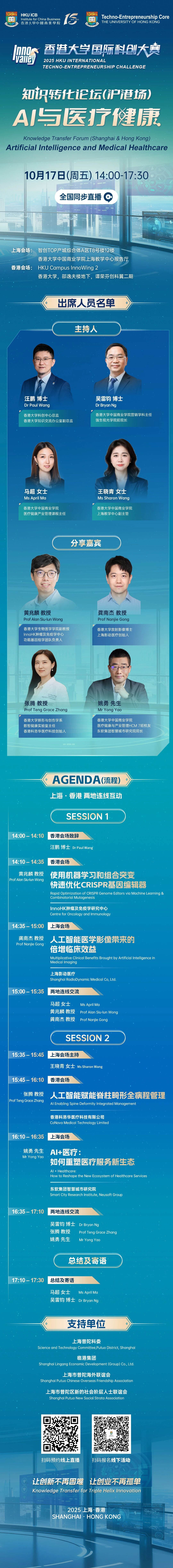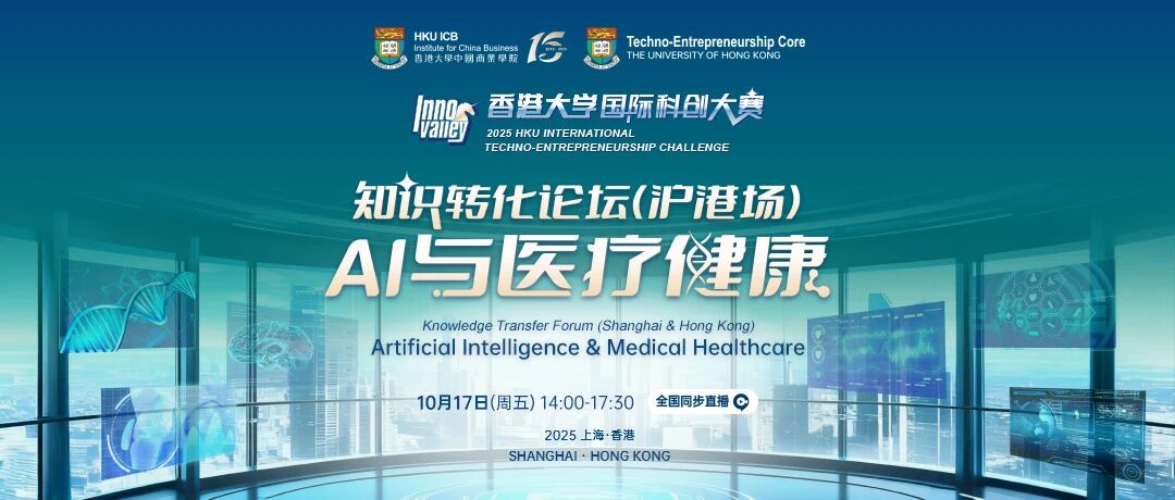 10月17日 | 知识转化论坛(沪港场):AI与医疗健康隆重启幕